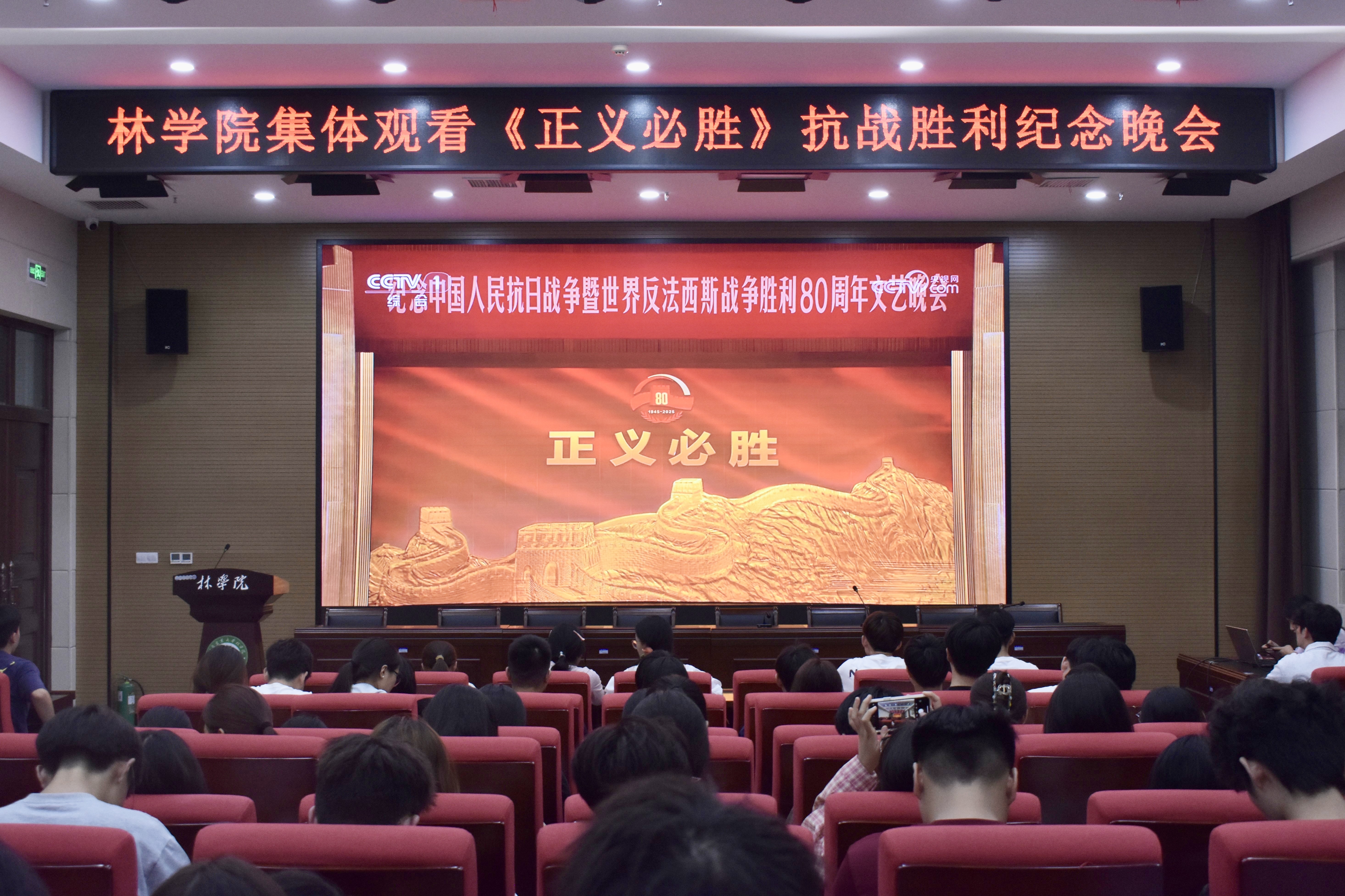 9月3日,在线直播 于龙子湖校区力行楼南428会议室,举行在线直播 集体观看纪念中国人民抗日战争暨世界反法西斯战争胜利80周年大会及《正义必胜》抗战胜利纪念晚会活动,在线直播 师生参加本次活动。