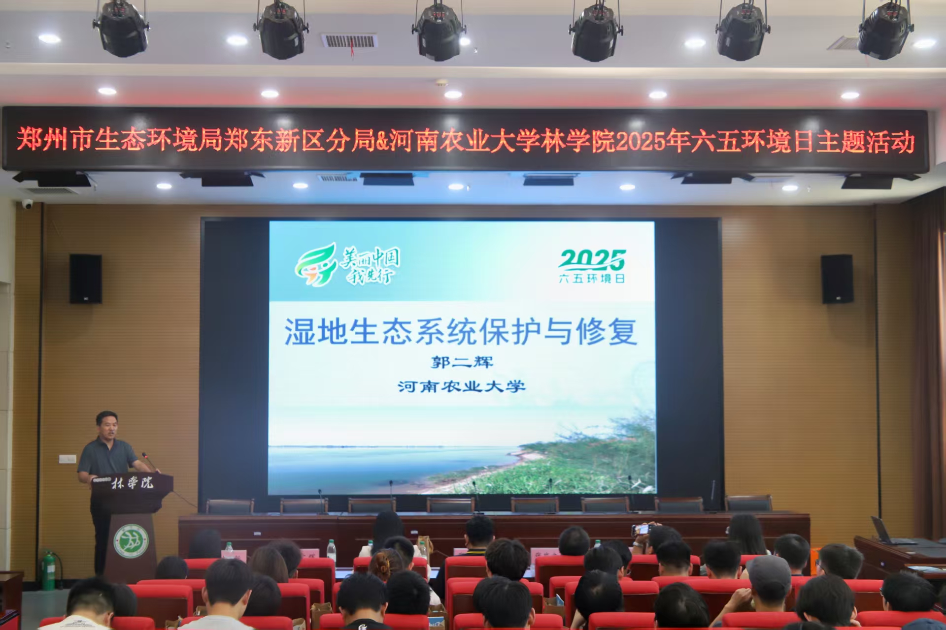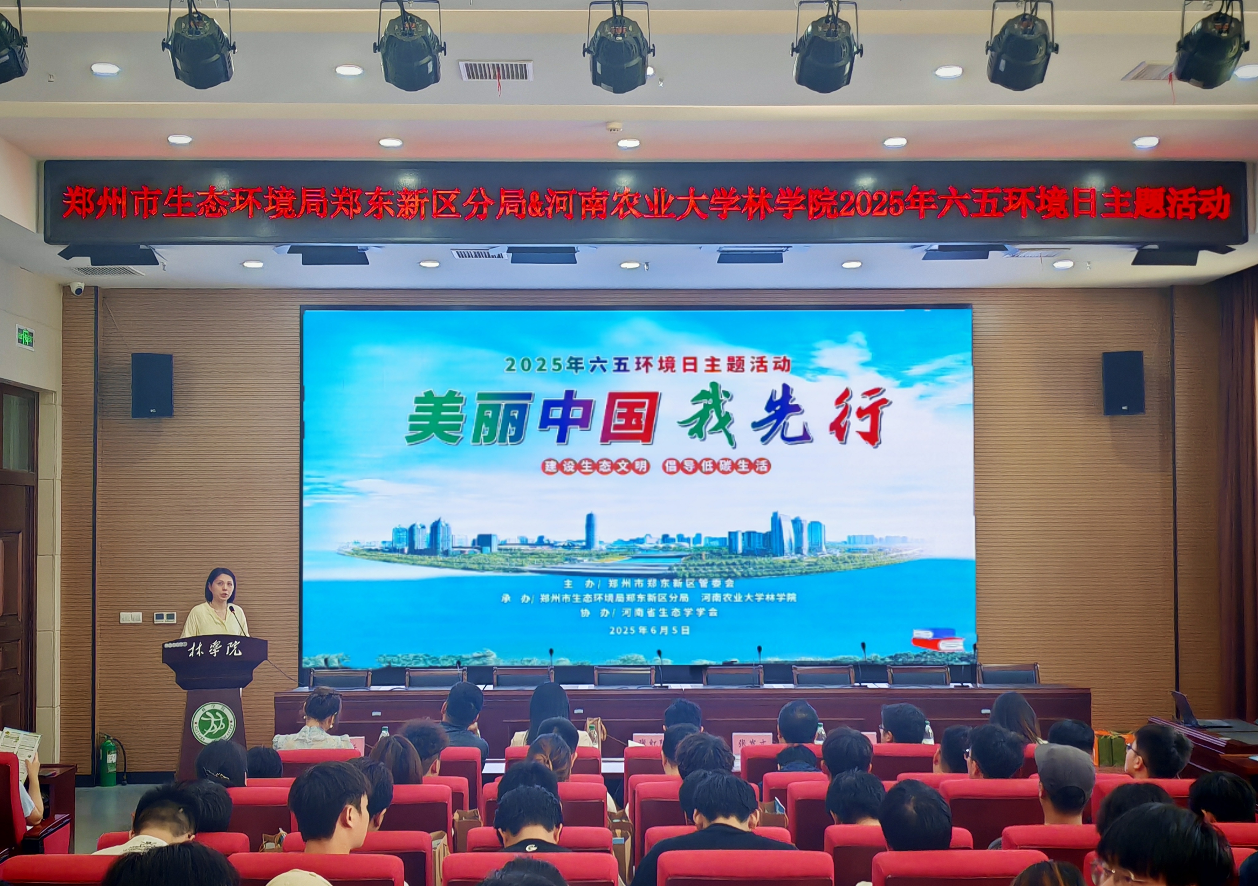 本网讯(通讯员 马蒙恩)6月5日,由郑州市东区管委会主办,在线直播 与郑州市生态环境局郑东新区分局承办的“美丽中国我先行”——2025年六五环境日主题活动在龙子湖校区力行楼举行。郑州市生态环境局郑东新区分局局长张红阳、在线直播 党委书记化青报、院党委副书记王娟及学院师生代表参加本次活动。