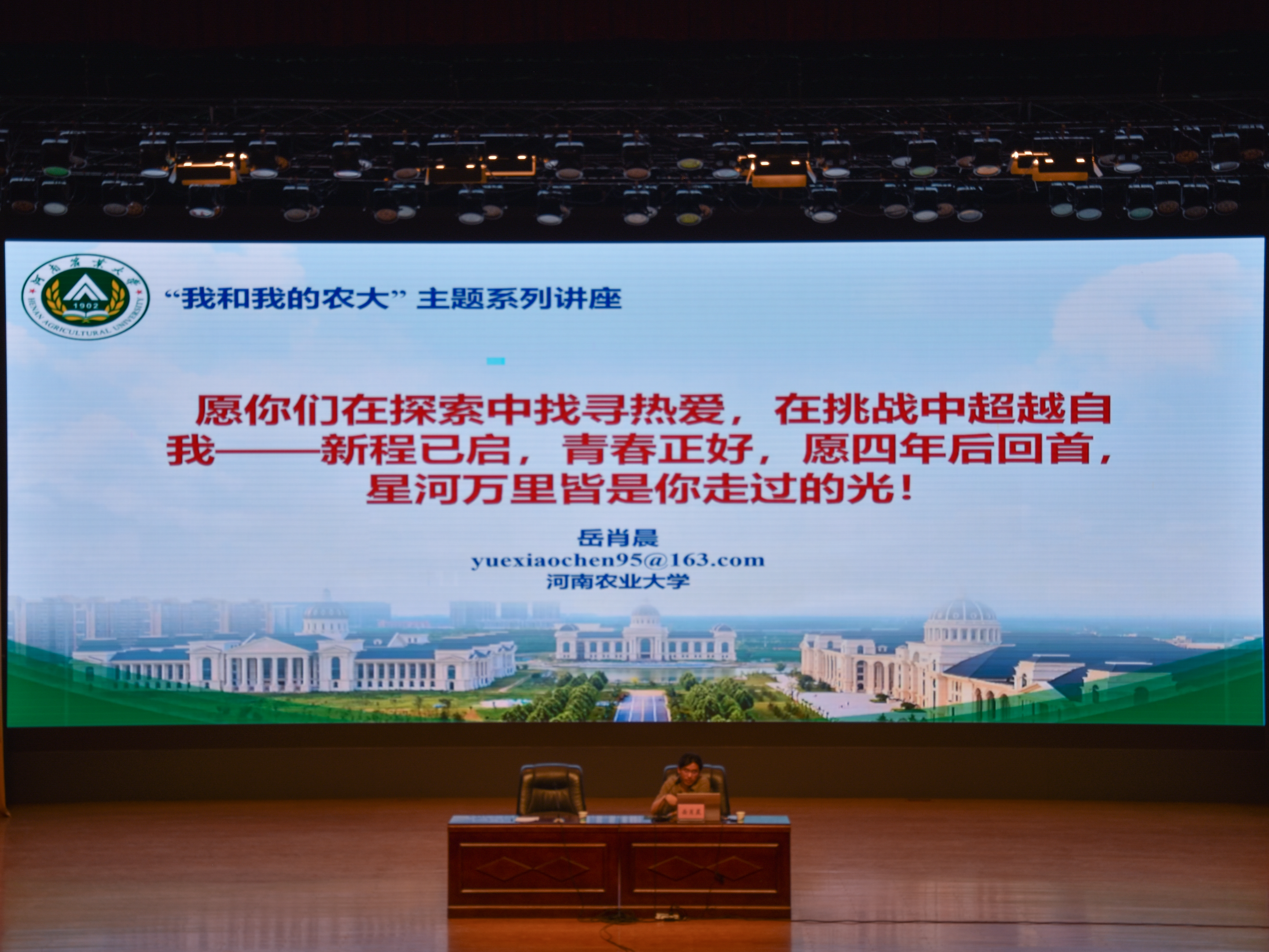 5月13日下午,在线直播 与烟草学院在文化路千人大礼堂举办“我和我的农大”校友主题分享会。在线直播 岳肖晨博士、烟草学院刘冰洋博士受邀作为主讲嘉宾,在线直播 团委老师张琛、烟草学院团委老师昌堃以及两学院24级全体本科生参加。