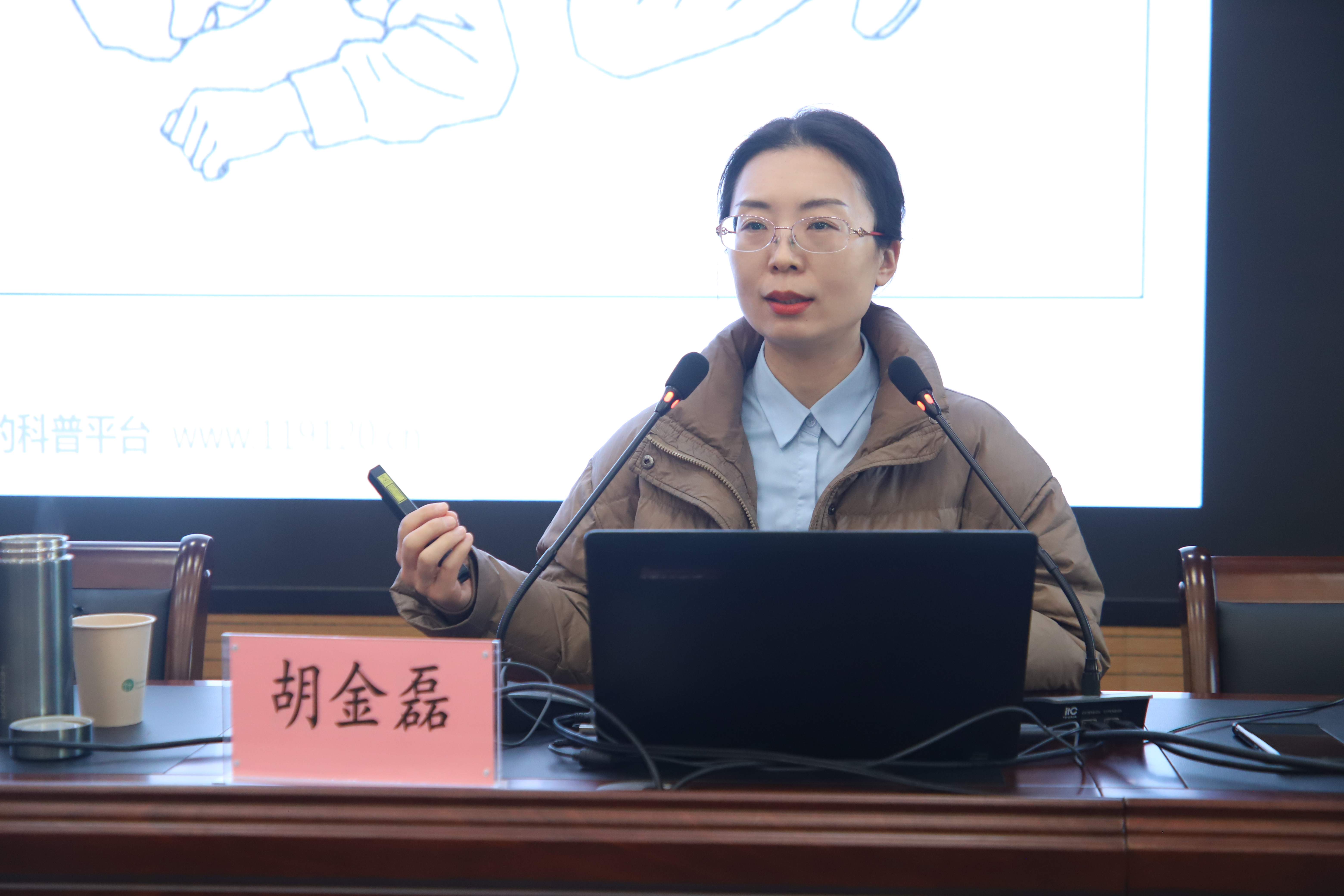 接着,胡金磊发表讲话。她提出了当前普遍存在的“重治疗轻预防”的问题并强调了预防的重要性,提醒即使是年轻人也不能忽视健康问题。她还细致地讲解了心脑血管疾病的主要危险因素、一般危险因素以及新关注的危险因素,提醒师生们要注意远离这些因素。此外,她还鼓励师生们养成良好的生活、饮食习惯,定期测量血压、血糖、血脂,时刻关注自己身体的健康状况。