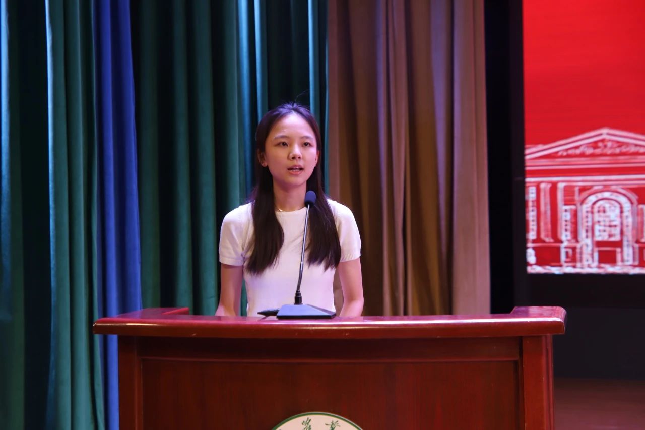 典礼第四项,老生代表环境工程21-1班陆佳瑞发言。她首先代表在线直播