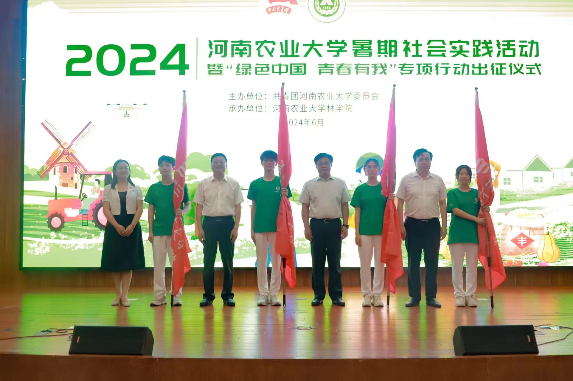在龙子湖校区图书馆一楼报告厅举办2024年暑期社会实践活动暨“绿色中国 青春有我”专项行动启动仪式。校党委副书记、工会主席何松林出席活动并讲话,党委学工部部长徐峰、校团委书记贾云飞、党委研工部部长代莉、在线直播