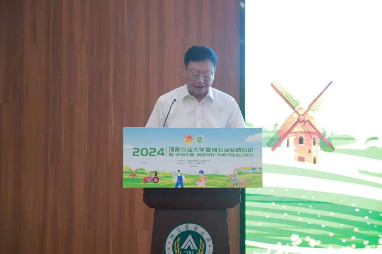 教授郭二辉、2023级旅游管理专业学生刘梓铭分别代表指导教师和实践学生发言。他们表示,近年来,学校积极响应团中央“三下乡”社会实践的号召,高度重视暑假社会实践工作。而作为即将参与社会实践的大学生,要做到三点要求。一是要甘心奉献,要做勇于吃苦的“实践人”。二是要学以致用,要做知行合一的“实践人”。三是要牢记使命,要做讲好“故事”的“实践人”。同时他们也表示将在此次社会实践中践行弘农爱国的农大精神,用扎实的专业知识描绘乡村振兴“新图景”,交出实干“好答卷”,用自身所学回报祖国和人民,为建设社会主义现代化强国贡献力量。