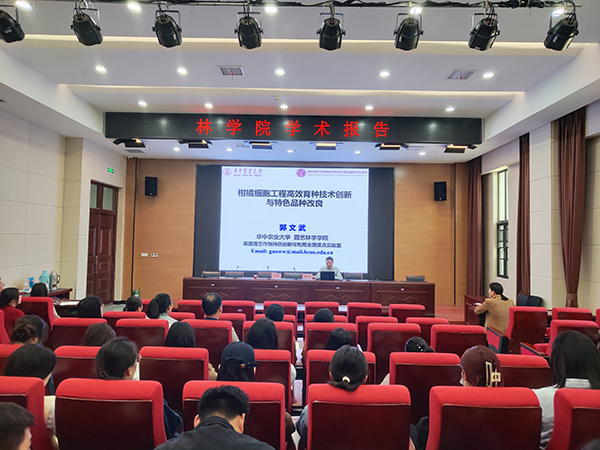 郭文武教授以“柑橘细胞工程高效育种技术创新与特色品种改良”为题作报告。从我国柑橘种业发展面临的问题、果树等园艺作物多倍体、倍性与抗性/适应性和果实品质的关系、人类和动物多倍体、细胞工程高效育种技术等方面进行全方位地讲解,并强调了细胞育种的多样性和细胞工程研究的重要性。