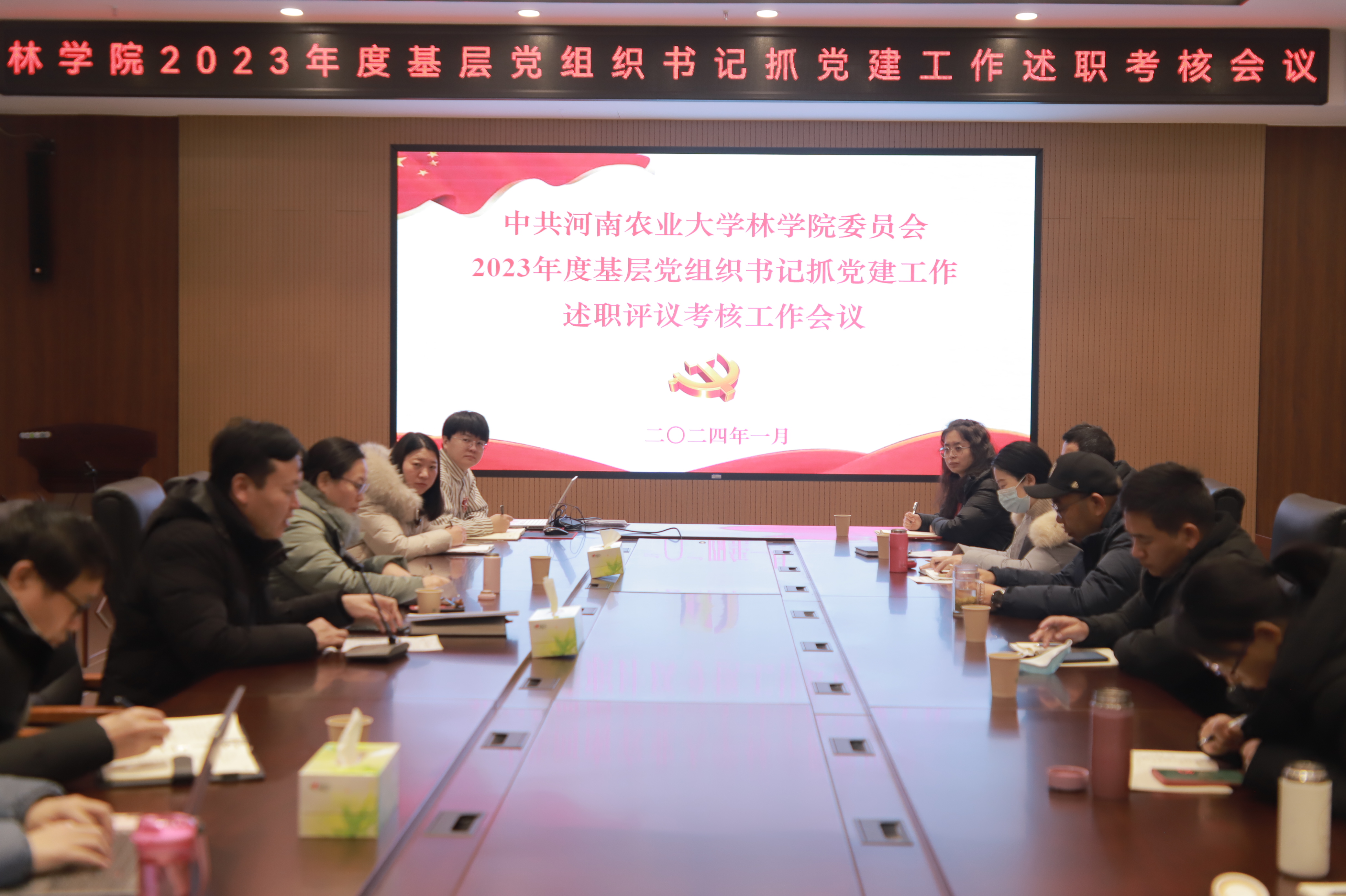 1月19日,在线直播 于龙子湖校区力行楼南231召开2023年度基层党支部书记抓党建工作述职评议考核会议。院党委书记化青报、院党委副书记王娟、副院长彭万喜、张学芳、李喜梅及各系教工党支部书记、支委参加会议。会议由王娟主持。