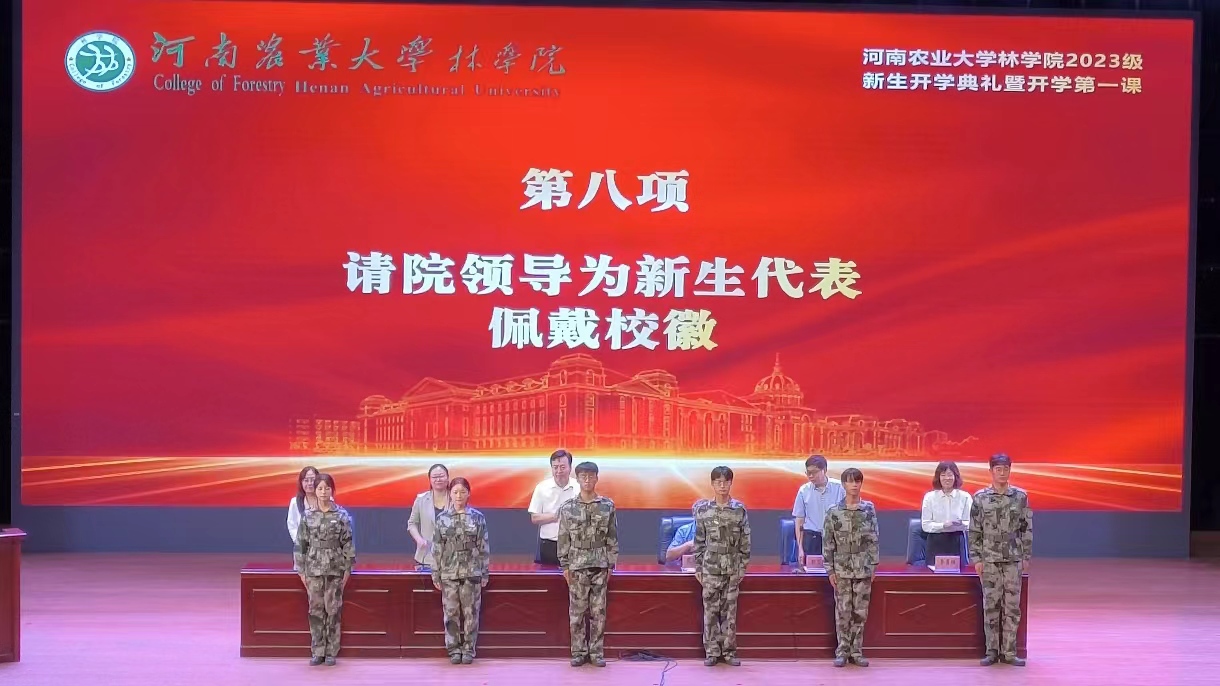 2023级新生开学典礼暨开学第一课,院党委书记化青报,院长范国强,院党委副书记王娟,副院长彭万喜、张学芳、李喜梅,研究生导师代表,新生班主任,辅导员老师及全体2023级新生参加典礼,典礼由王娟主持。