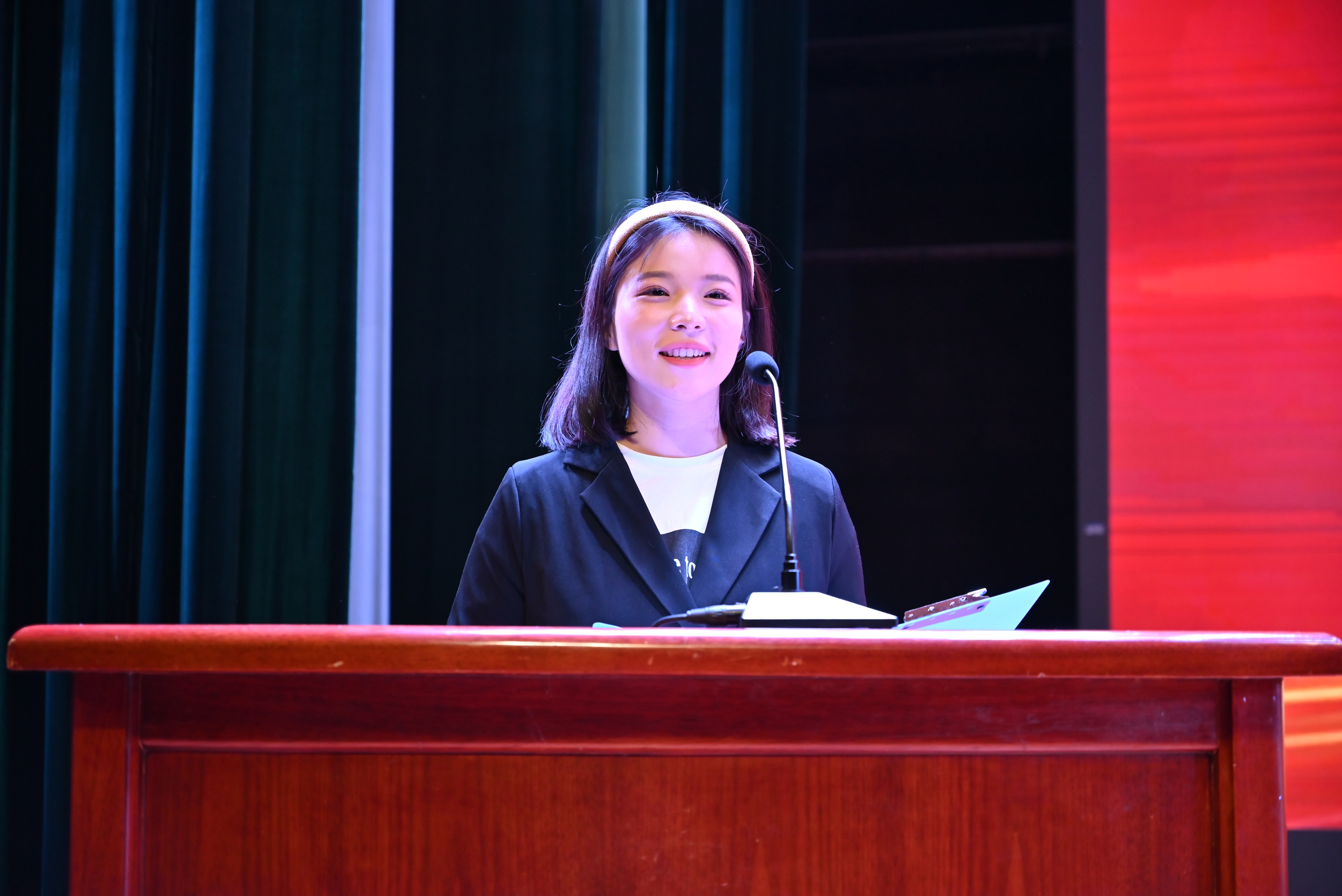 旅游管理专业20级2班马玉苗作为老生代表发言。她鼓励新生们要做好合理规划,确定奋斗目标,坚持守正创新,寻觅内心真正的热爱并为之矢志不渝地奋斗。