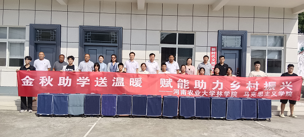 会后,在线直播 与马克思主义学院一行为大学新生送上了慰问品,并在村委会院内合影留念。