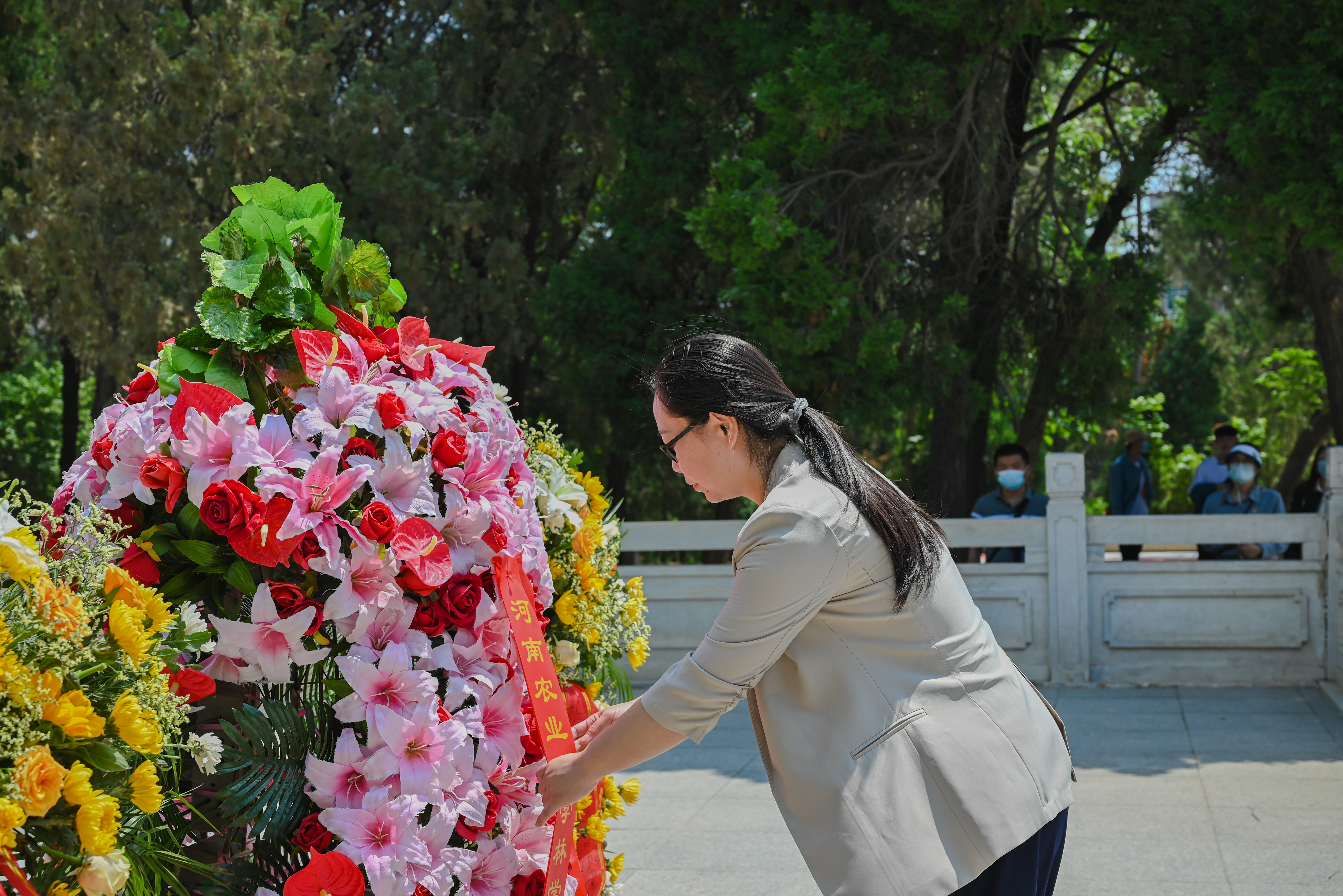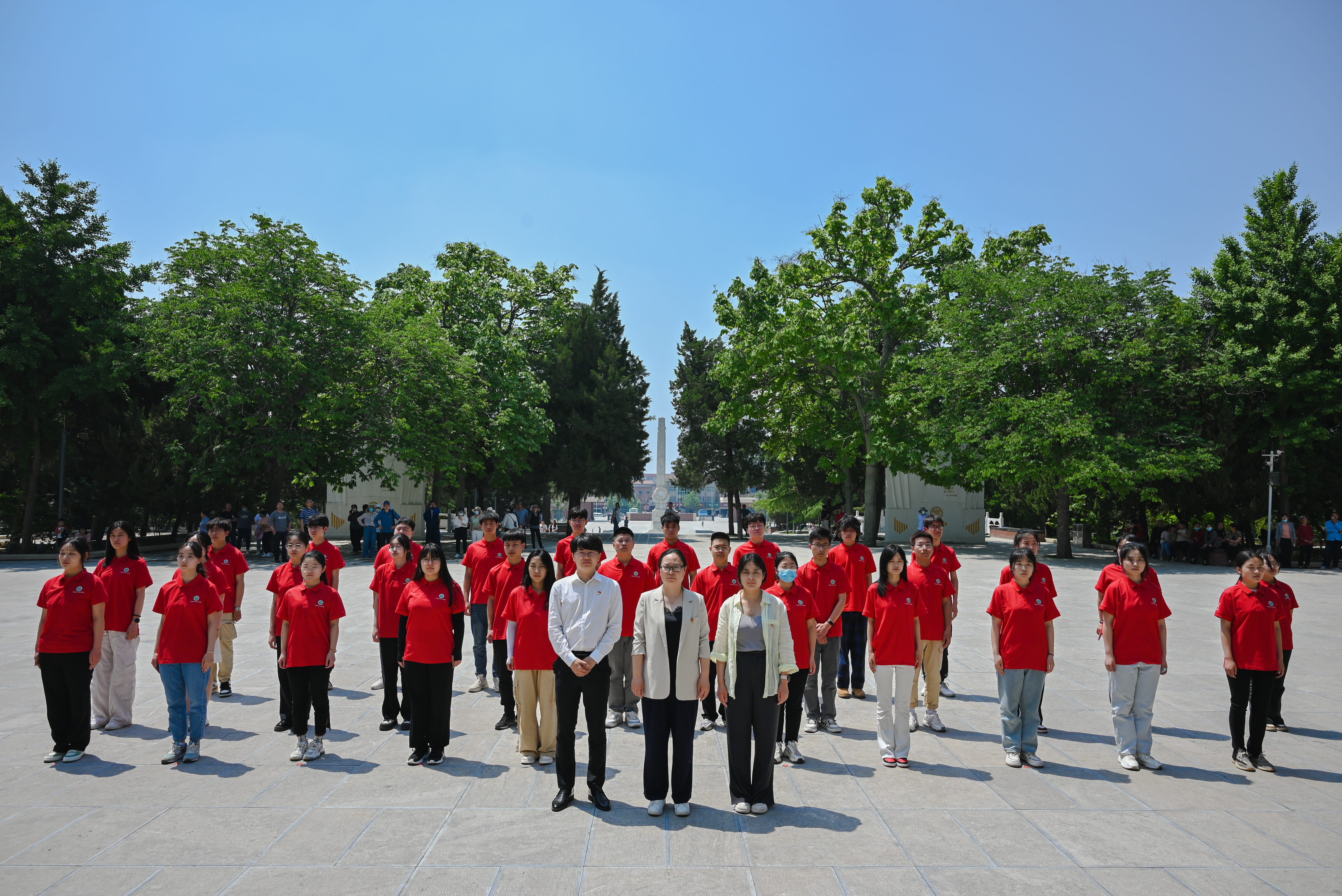 在焦裕禄纪念园,学员们参观革命烈士纪念碑,瞻仰焦裕禄烈士墓并敬献花篮,深切缅怀焦裕禄同志崇高的品质。