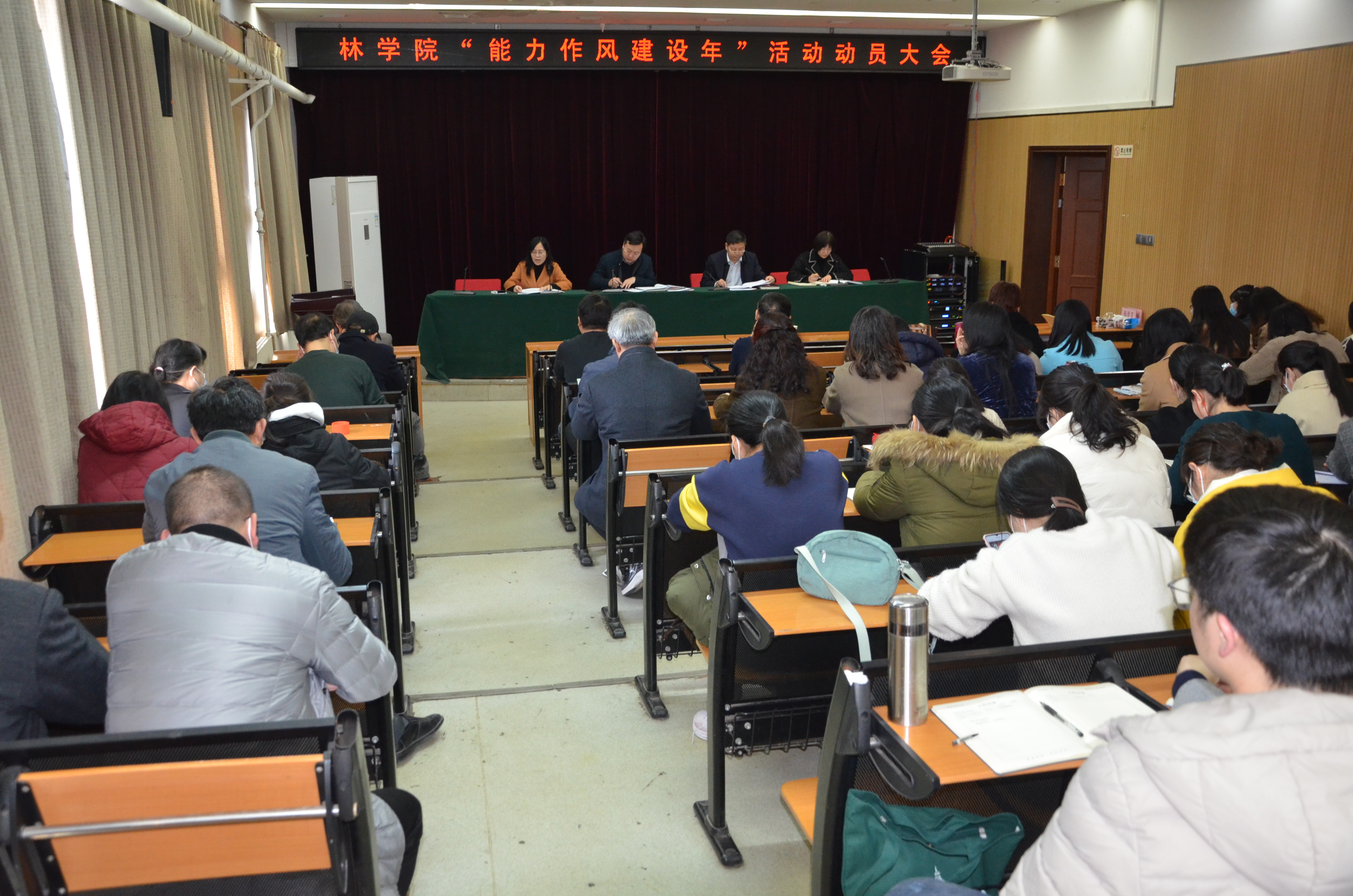 在文化路校区2号楼四楼报告厅召开“能力作风建设年”活动动员大会。学院领导班子和全体教职工参加会议,会议由院党委书记化青报主持。