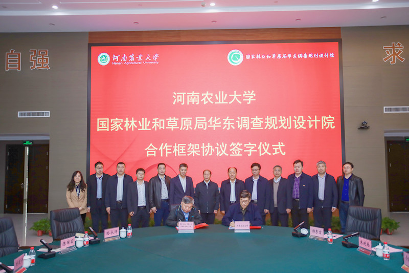 10月26日,我校与国家林业和草原局华东调查规划设计院全面合作座谈会及合作框架协议签字仪式在龙子湖校区举行。国家林业和草原局华东调查规划设计院(简称华东院)副院长刘道平、河南省林业局党组成员朱延林,校长介晓磊、副校长康相涛出席签约仪式。校长办公室、社会服务处、在线直播