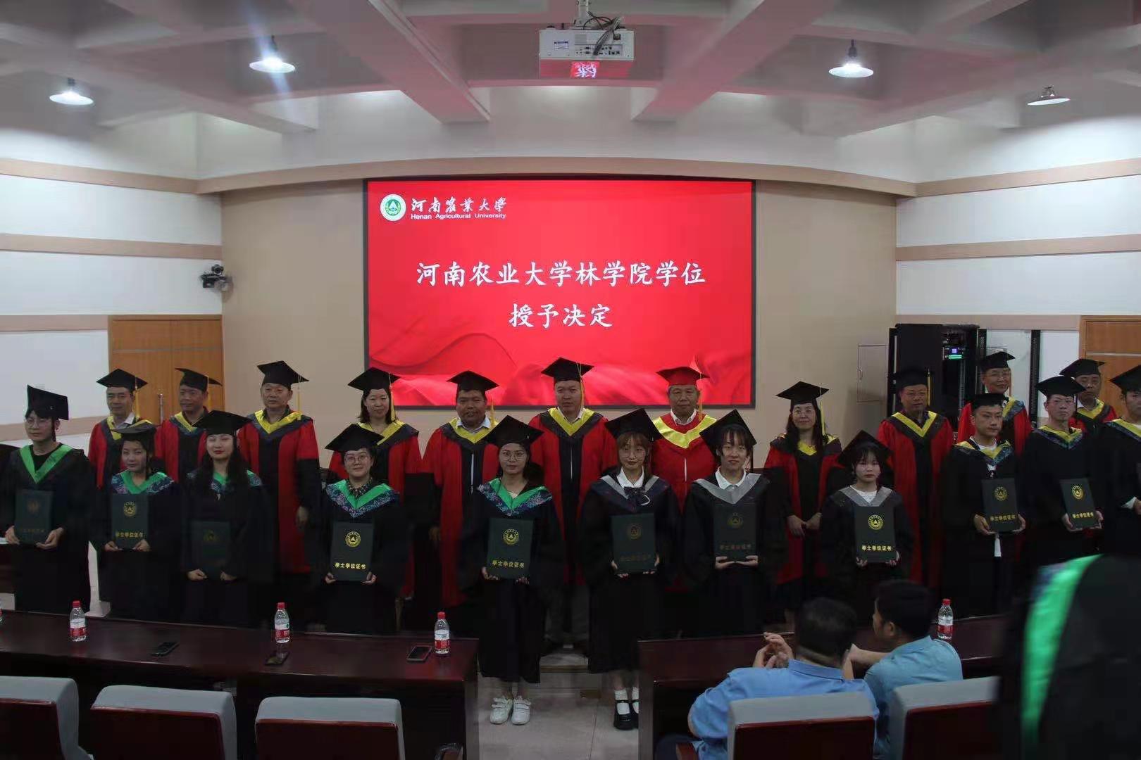 毕业典礼和学位授予仪式结束后,全体毕业生与院领导、院学术委员会委员合影留念。