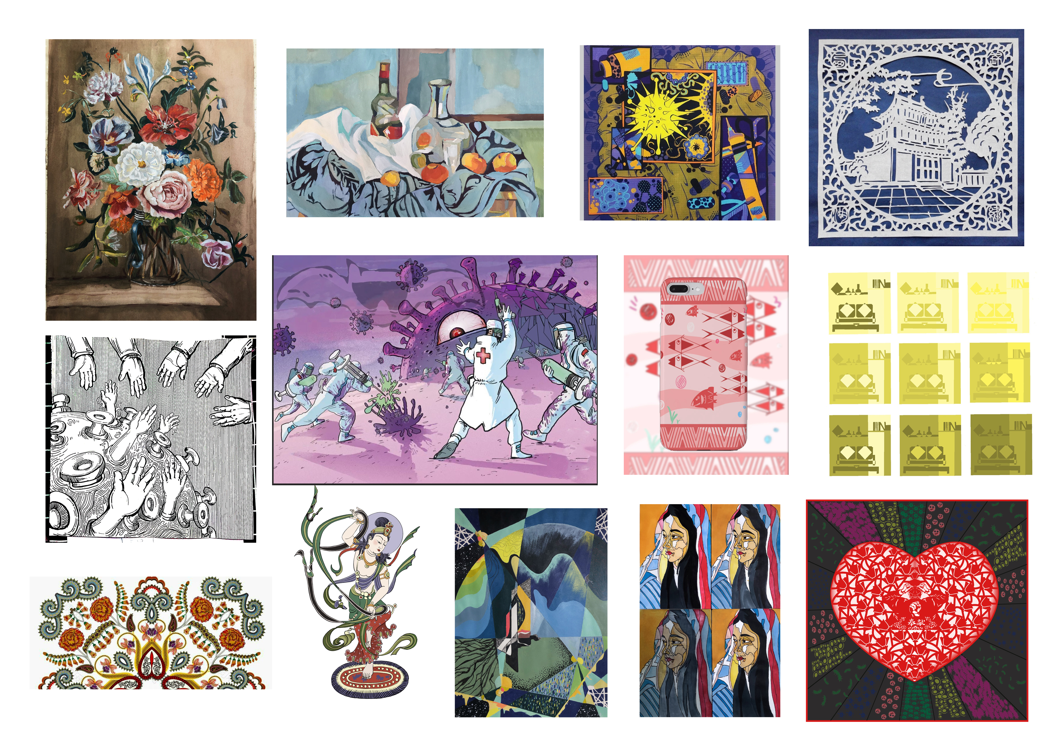 在这个特殊时期,对于讲授实践性较强的艺术课程无疑具有很大挑战,王娜老师也一直在探索如何能够隔着屏幕就把艺术实践课满满的干货传递给学生,启发引导他们创作更好的作品?如何在有限的条件下,学会利用手边一切素材,在设计实践中体会并传达出设计思维?经过反复研究、实验,最终这些问题在王娜老师的教学模式中变成了学生生动的作品。