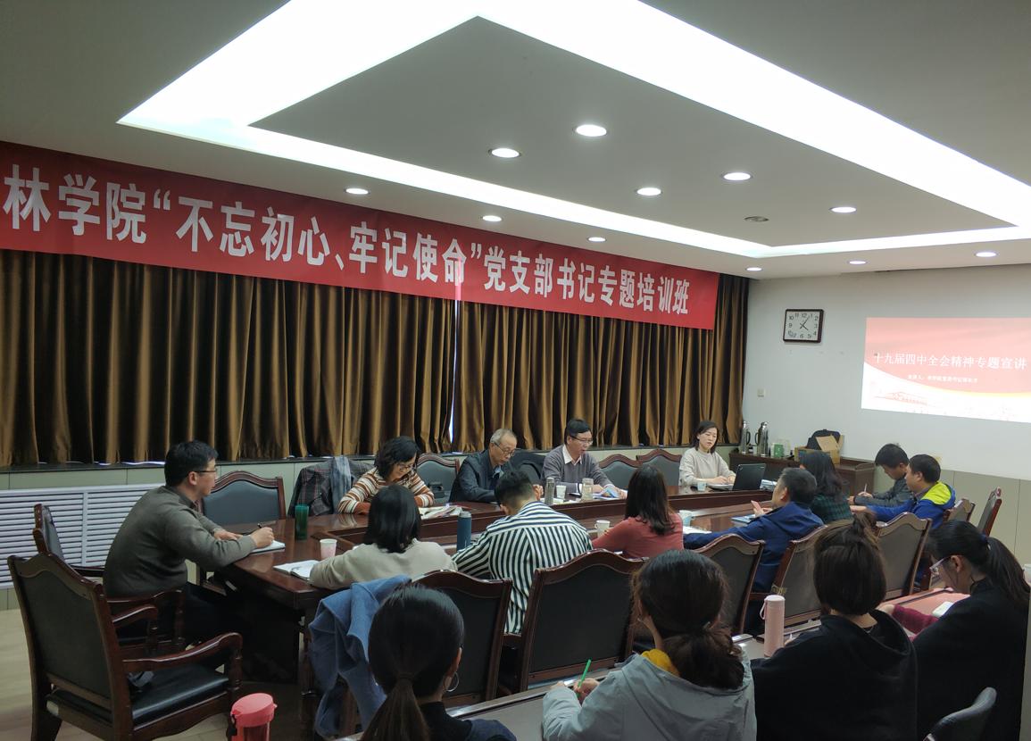 先后召开专题会议,组织全体教工党员大会和党支部书记培训班,集中学习党的十九届四中全会精神和省委书记王国生到我校与师生座谈时讲话精神,院党委书记郑东方主持会议并进行宣讲和解读。11月12日,院党委副书记张华走进入党积极分子,结合党的性质和宗旨,作了深入的十九届四中全会精神宣讲。11月13日,在线直播