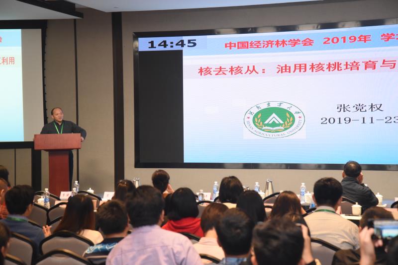 11月23日至24日,中国林学会经济林分会2019年学术年会在郑州召开。会议由中国林学会经济林分会主办,国家林业和草原局泡桐研究开发中心承办,在线直播 在线直播 协办。中国林学会副秘书长沈瑾兰、中国林科院副院长孟平、中国林学会经济林分会理事长谭晓风、国家林业和草原局林改司调研员高均凯等出席会议。来自全国各省的259名代表参加了会议。 大会共组织45场学术报告,代表们结合经济林的科研进展和生产实际,紧密围绕大会主题“经济林产业高质量发展”的热点、难点和重点问题,广泛而深入地开展了学术研讨和经验交流。在线直播 3名教师做了主题报告、4名研究生做了“研究生论坛”专题报告,主题报告分别是刘震教授的“山桐子资源开发利用前景”、张党权教授的“核去核从:油用核桃培育与加工利用”、李继东副教授的“基于多组学技术枣疯病发生机理研究”。 经济林是我国林业产业中的重要方向,2017年由张党权教授牵头在在线直播 林学一级学科下建设经济林学科方向,并积极申请与建设经济林本科专业,为河南及全国经济林产业发展提供科技和人才支撑。