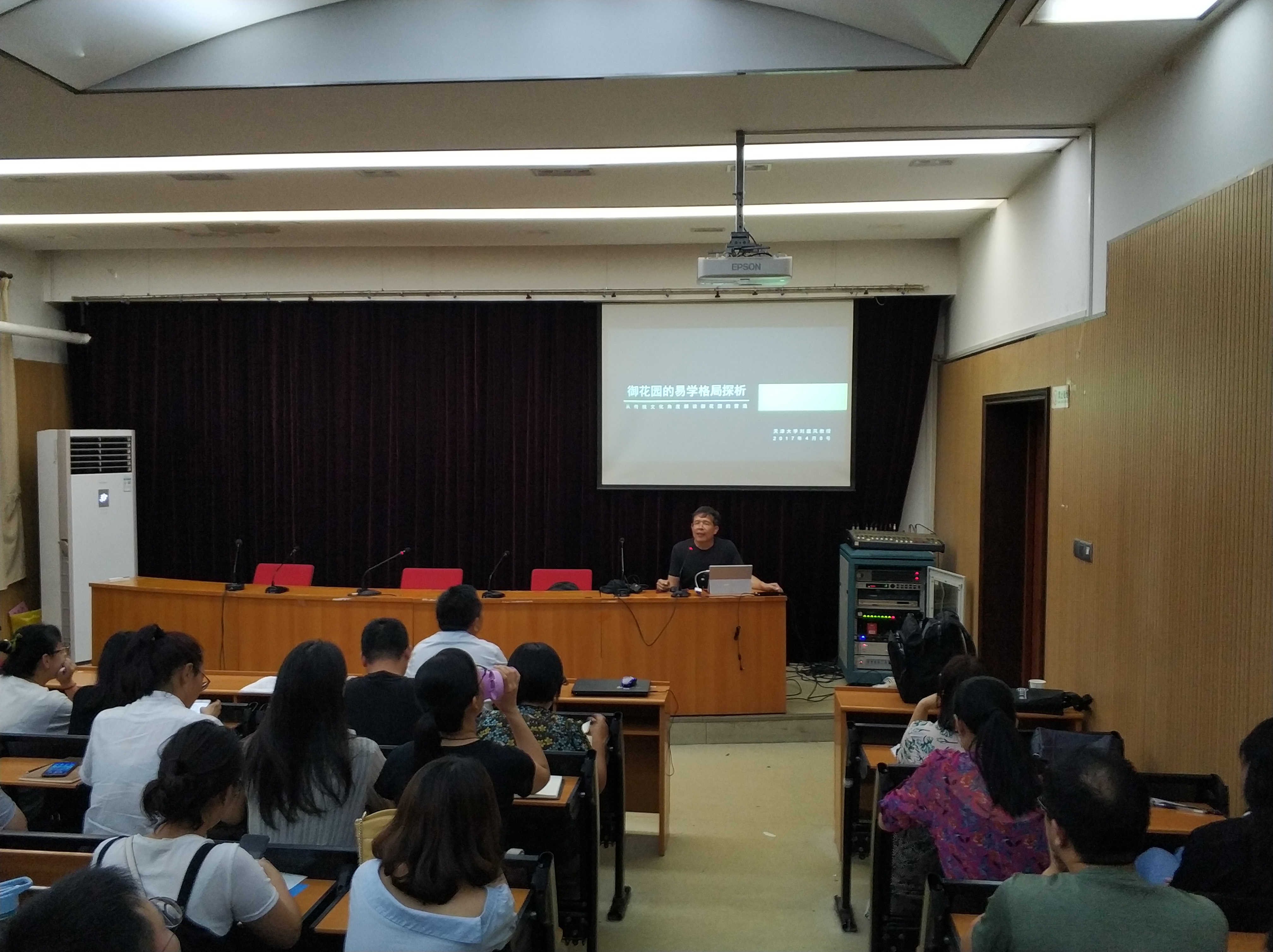师生作了题为“探索皇家院园林的意境——跟着刘教授学造园”的精彩学术报告,报告会由副院长孔德政主持。刘教授以中国传统哲学视角重新审视皇家园林的深邃设计思想,在自己的一亩园中践行自己的研究成果,对风景园林研究思想和方法进行了大量实验性探索。