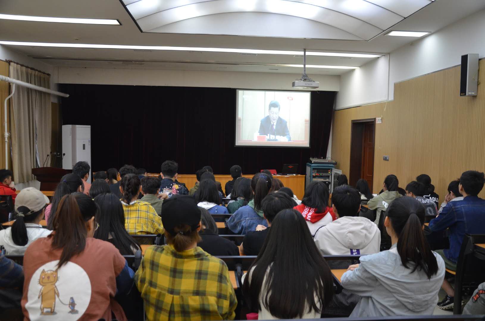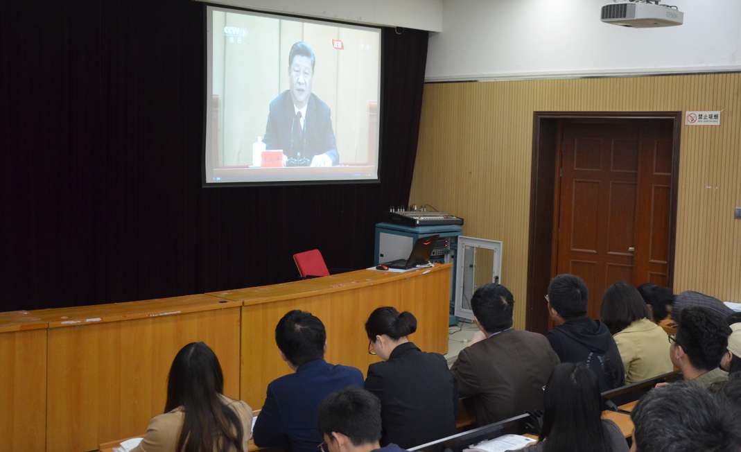 为纪念五四运动100周年,中共中央于4月30日上午10时30分在人民大会堂举行纪念五四运动100周年大会,习近平总书记出席大会并发表重要讲话。在线直播 积极组织师生观看大会盛况。院党委书记郑东方、院党委副书记张华、院团委全体老师与在线直播 部分学生干部及青马班成员一同观看。