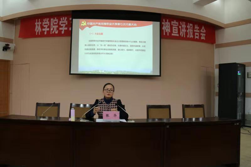 张华紧密结合校院实际,从校第七次党代会盛况、第六次党代会以来的工作、新时代的奋斗目标和战略、今后五年的工作安排四个部分,全面系统地解读了校党委书记李留心同志所作的党委工作报告。校七次党代会是在新的历史起点上召开的一次非常重要的大会,11980字的党委工作报告是对历史的尊重,对当下的思考,对未来的谋划。报告旗帜鲜明讲政治,实事求是绘蓝图,立足实际谋发展,强调了建设以农为优势特色的高水平大学的办学目标的“三步走”发展战略。她强调高校应聚焦“以本为本”,“四个回归”,在“六个方面下功夫”,努力培养德智体美劳全面发展的社会主义建设者和接班人。她希望广大青马班学员,自觉用校七次党代会精神统一思想,坚定理想信念,刻苦学习知识,加强品德修养,勇于责任担当,为推动学校事业发展贡献力量。