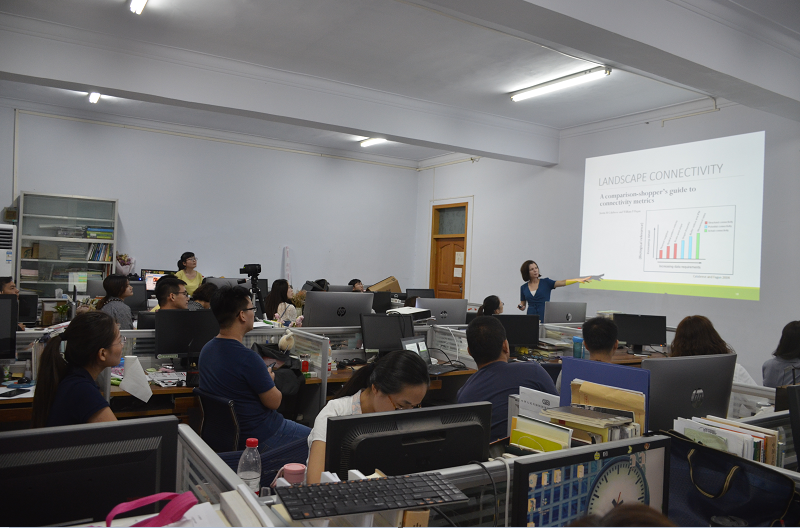 来访期间,Emily Minor教授深入实验室,以问题为导向,就网络分析法在多尺度景观连通性评估方面的运用以及景观连通性的定性与定量化研究方面向团队成员进行了全方位、多角度、多形式的交流与展示。随后,专家为在线直播