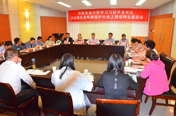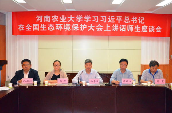 在文化路校区大礼堂第三报告厅召开学习习近平总书记在全国生态环境保护大会上讲话师生座谈会。副校长杨喜田、学院党委书记郑东方、院党委副书记张华、副院长刘震、孔德政,以及林学系和环境系师生代表出席了本次座谈会,深入学习和领会习总书记生态文明思想,交流学习心得与体会。座谈会由郑东方主持。