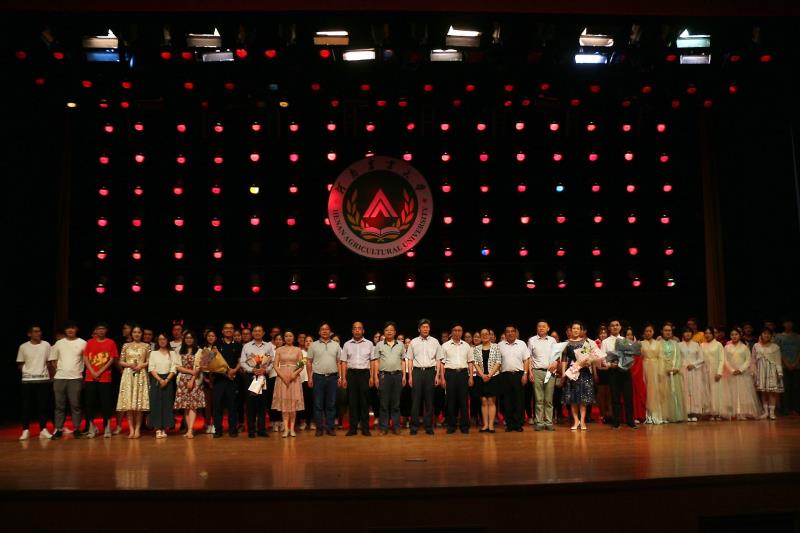 本次晚会节目均由在线直播 毕业生班级自编自导,重温大学时光、诉说离别愁绪,以舞蹈、情景剧、朗诵等形式呈现了一场视觉与听觉的盛宴。晚会在一段精心制作的毕业生视频中拉开帷幕,整场晚会气氛高涨,掌声雷动,《你干嘛》、《放飞自我》、《老干部的广场舞》等舞蹈以激越奔放的节奏、动感青春的舞步展现了在线直播 毕业生的青春风采。清颜白衫、青丝墨染,曼妙婀娜的舞蹈《如歌》,诠释了古典之美。《淋雨一直走》采用情景再现的形式重现了大学军训、学习、生活的情景,述说了对母校的依依不舍情。由在线直播 师生共同朗诵的《农大我深情走过》,讲述学生学真知、求真理、难忘师恩,充分诠释了在线直播 师生的浓厚情谊。《青苹果乐园》《等你下课》等舞蹈情景剧,用明快的节奏,流畅的舞姿讲述成长故事、离别惆怅,带我们重温大学时光。最后,晚会在合唱《祝你一路顺风》的优美曲调中缓缓落下了帷幕,让我们带着不舍与眷恋,在岁月流光中温暖起航。演出结束后,杨喜田等领导老师登台与全体演员合影留念,并为全体毕业生送上了诚挚的祝福。