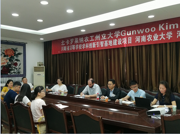 邀请2018年河南省国际人才合作项目、河南省高等学校学科创新引智基地项目合作专家、美国北卡罗莱纳农工州立大学Gunwoo Kim教授来我校进行合作研究。专家围绕绿色基础设施与景观生态设计等相关内容开展全方位研究,就两校科学研究合作,青年教师访学,博士、硕士研究生联合培养,高等学校学科创新引智基地建设等方面与在线直播