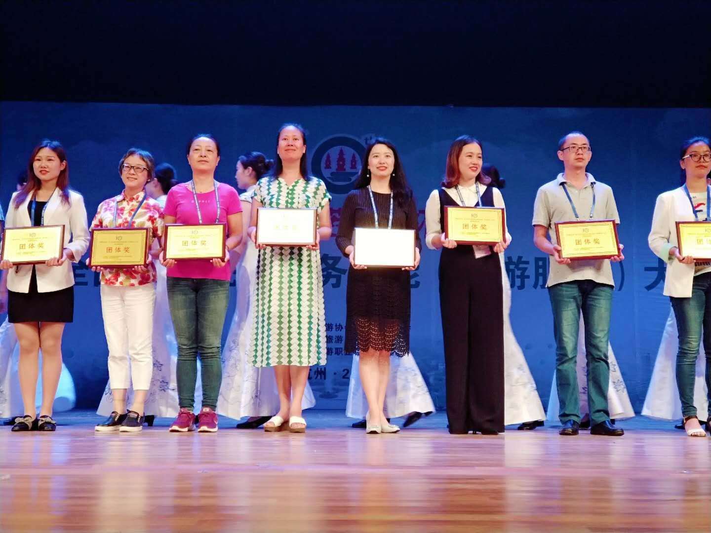本届大赛共有来自全国371所高等院校的1160名选手报名参赛,创历史新高。比赛设普通话导游服务和英语导游服务两个项目,包括理论考核、导游讲解和才艺展示三大板块。经过院内初赛和决赛,在线直播 共推选出四名优秀同学代表参赛。在备战阶段,由专业教师一对一指导,每天定时定量定任务,层层分解,逐一攻克;从导游词撰写,到中英文发音;从才艺选择,到表演指导,老师们都一丝不苟,力求完美。三轮激烈竞赛中,在线直播 学子沉着冷静,在突发状况前临危不乱,赛出了风格,也赛出了水平。最终代表在线直播 取得了团体奖一等奖,其中15级旅游管理的王雅清同学荣获二等奖,唐晓婷、苏慧颖、郭俊兰同学荣获三等奖的好成绩。