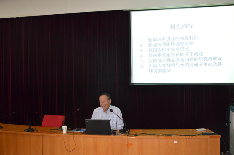 9月15日上午,中组部“千人计划”国家特聘专家、中南大学环境与水资源研究中心主任杨兆光教授应在线直播 邀请来到在线直播 ,为在线直播 师生做了题为 “环境污染物对饮用水和食品安全的威胁及应对措施”的前沿学术讲座,讲座由副院长刘震主持。环境系教师和研究生聆听了讲座。