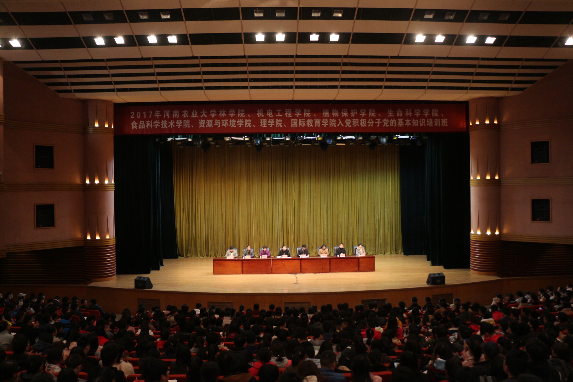 联合机电工程学院、植物保护学院、生命科学学院、食品科学技术学院、资源与环境学院、理学院、国际教育学院在校大礼堂成功举办2017年入党积极分子学习党的十九大精神培训班开班典礼。校党委组织部副部长、党校专职副校长余磊、在线直播