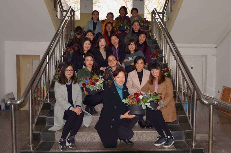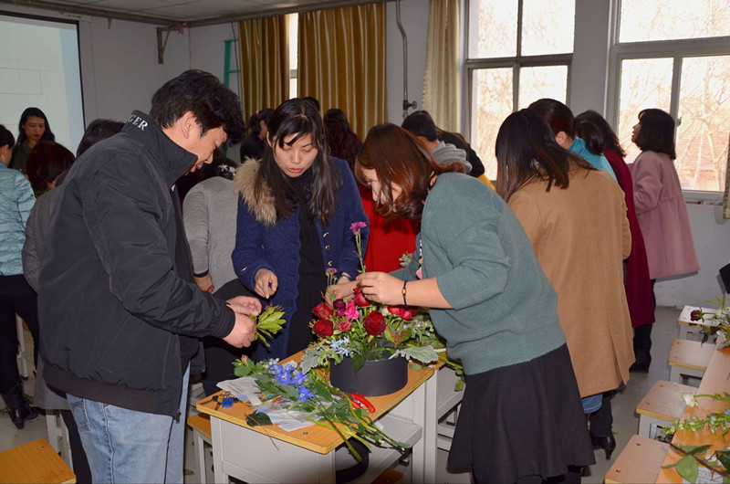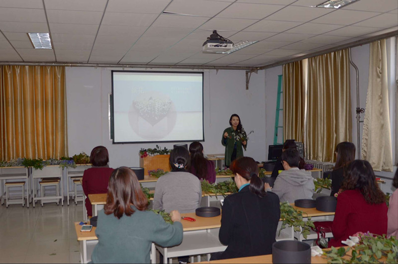3月7日下午三点,在“三·八”国际劳动妇女节到来之际,在线直播 工会在二号楼研究生教室举行了 “现代艺术插花技巧”插花活动。院长杨喜田和院工会主席张华莅临活动现场和在线直播 的女教工一同参与了活动。