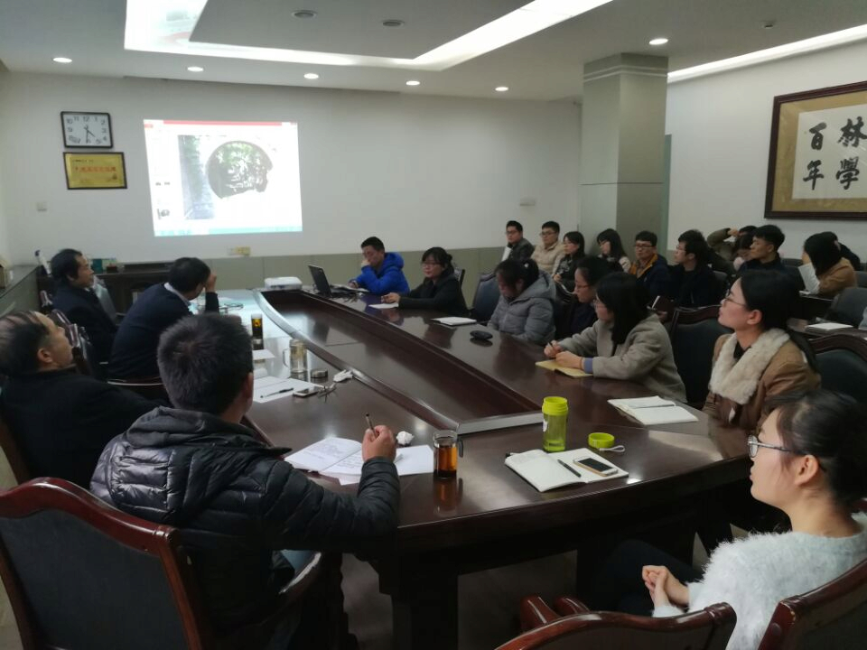 首先,2015级研究生王珊以《河南园林史研究进展》的报告拉开了本次活动的帷幕。她以河南园林的空间边界和历史变迁等方面为例系统阐释了河南园林发展的历程及发展现状。接着,2015级研究生刘路祥在报告中主要分析了中国园林“小中见大”空间手法的原理和应用。最后,2015级研究生唐文龙《牡丹花发育相关mads box基因家族功能分析》的报告从园林植物角度向大家展示了在线直播