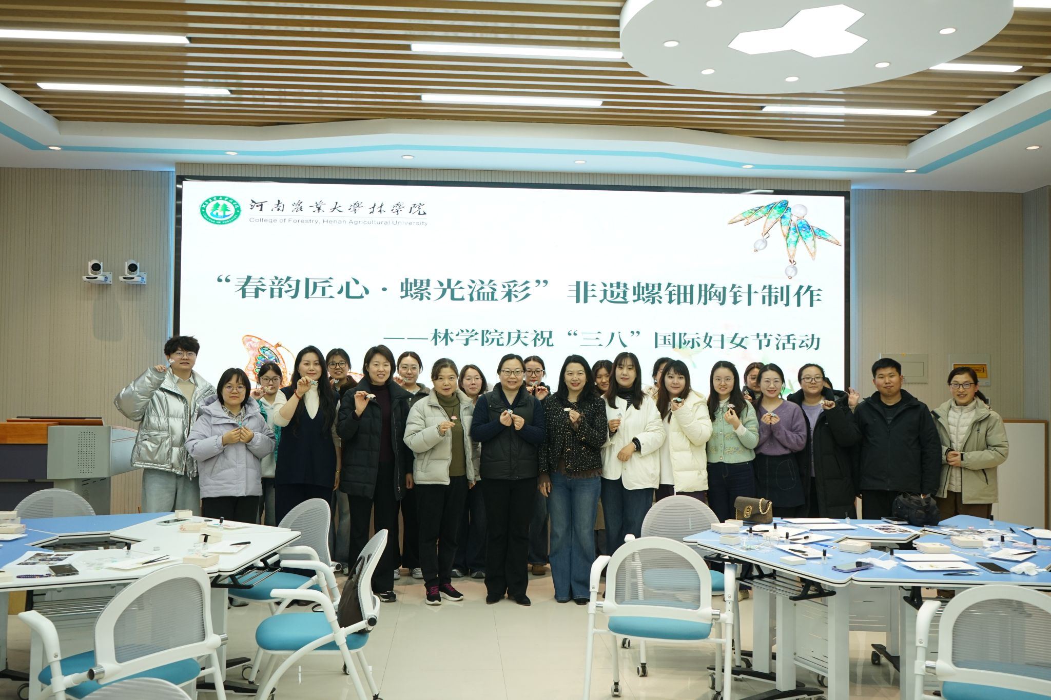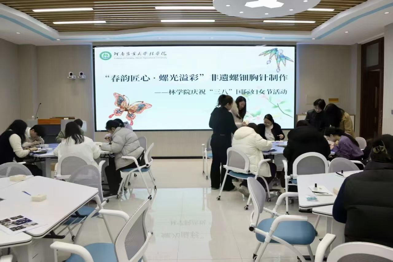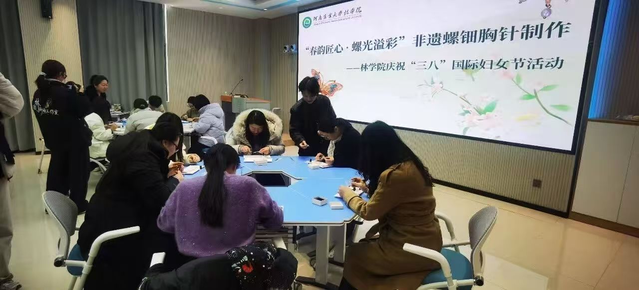 于龙子湖校区力行楼南250会议室举办“春韵匠心·螺光溢彩”三八国际妇女节特别活动。