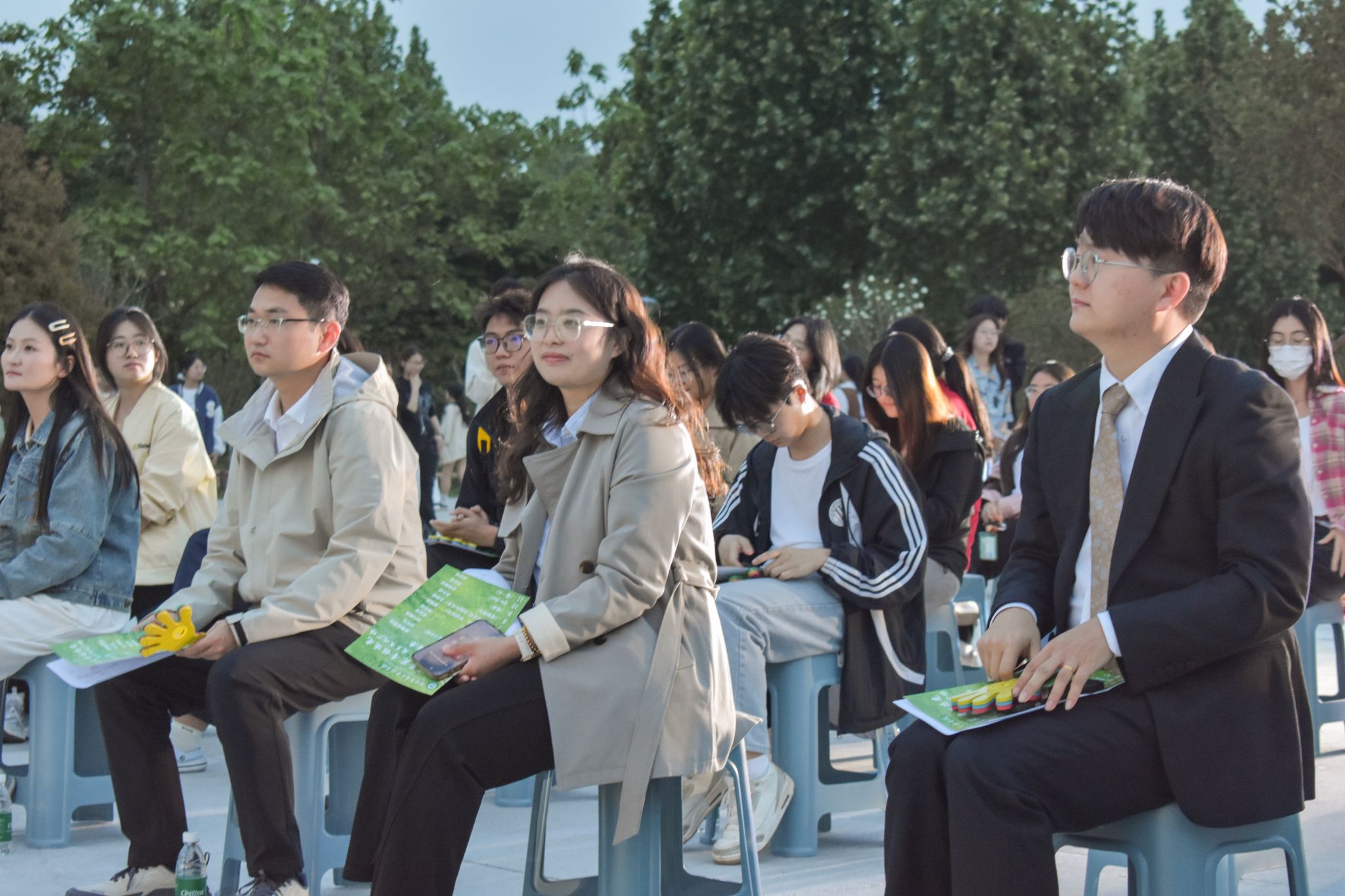 于龙子湖校区毓秀广场举行“玉球盈苑,青林逐光”周末文化广场活动。院团委书记田原、副科级组织员马蒙恩、院团委副书记张琛、院团委老师饶杭及学院全体学生参加本次活动。
