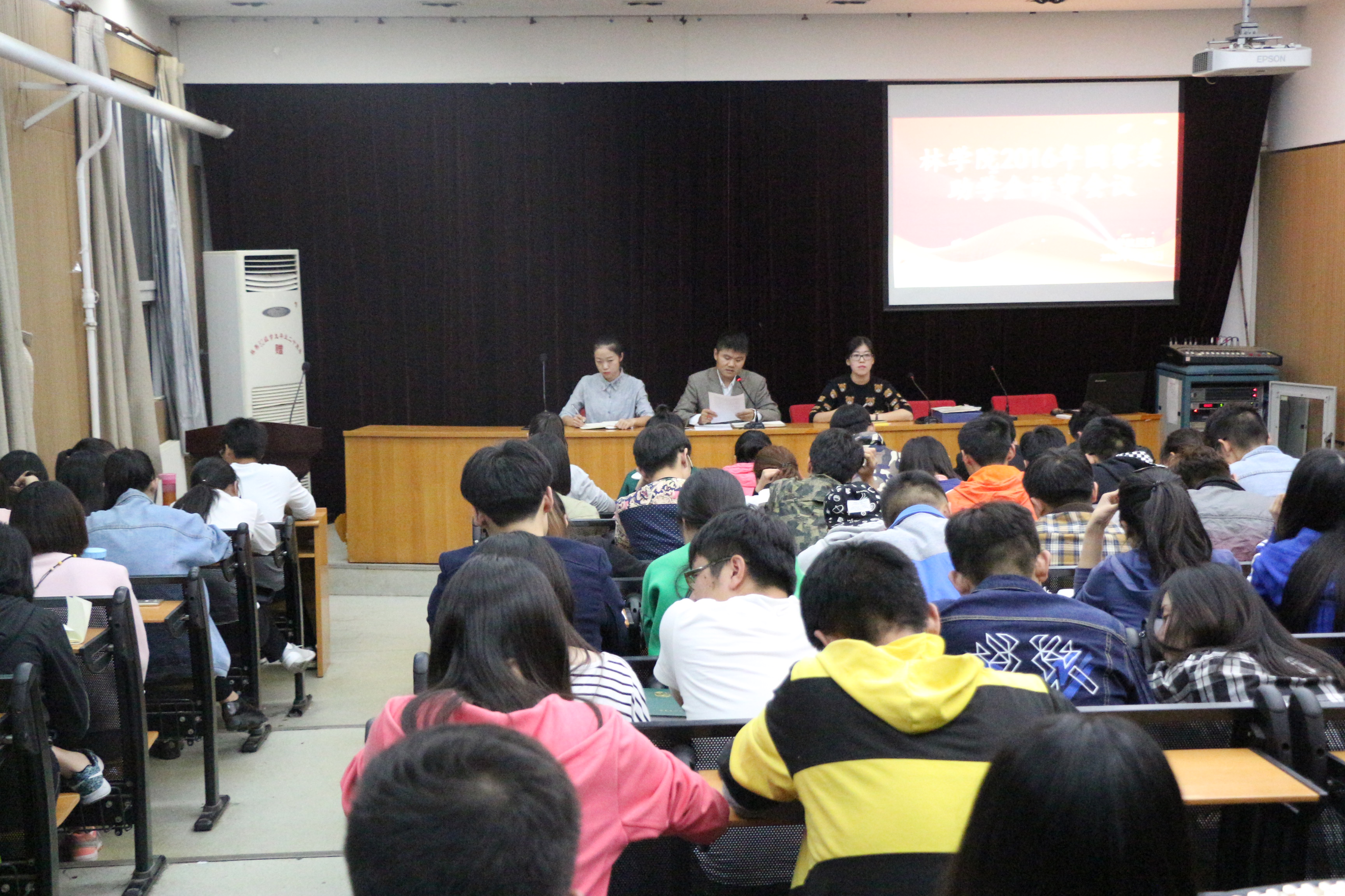 为确保学院奖助学金工作顺利进行,9月28日,在线直播 于2号楼四楼学术报告厅召开在线直播 奖助学金评选工作会。院团委书记张保磊、团委副书记姜鑫、辅导员郭睿出席了本次会议,全体班长支书及2016级新生助理班主任参加了此次会议。